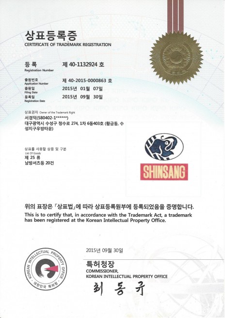 SINSANG商标注册证